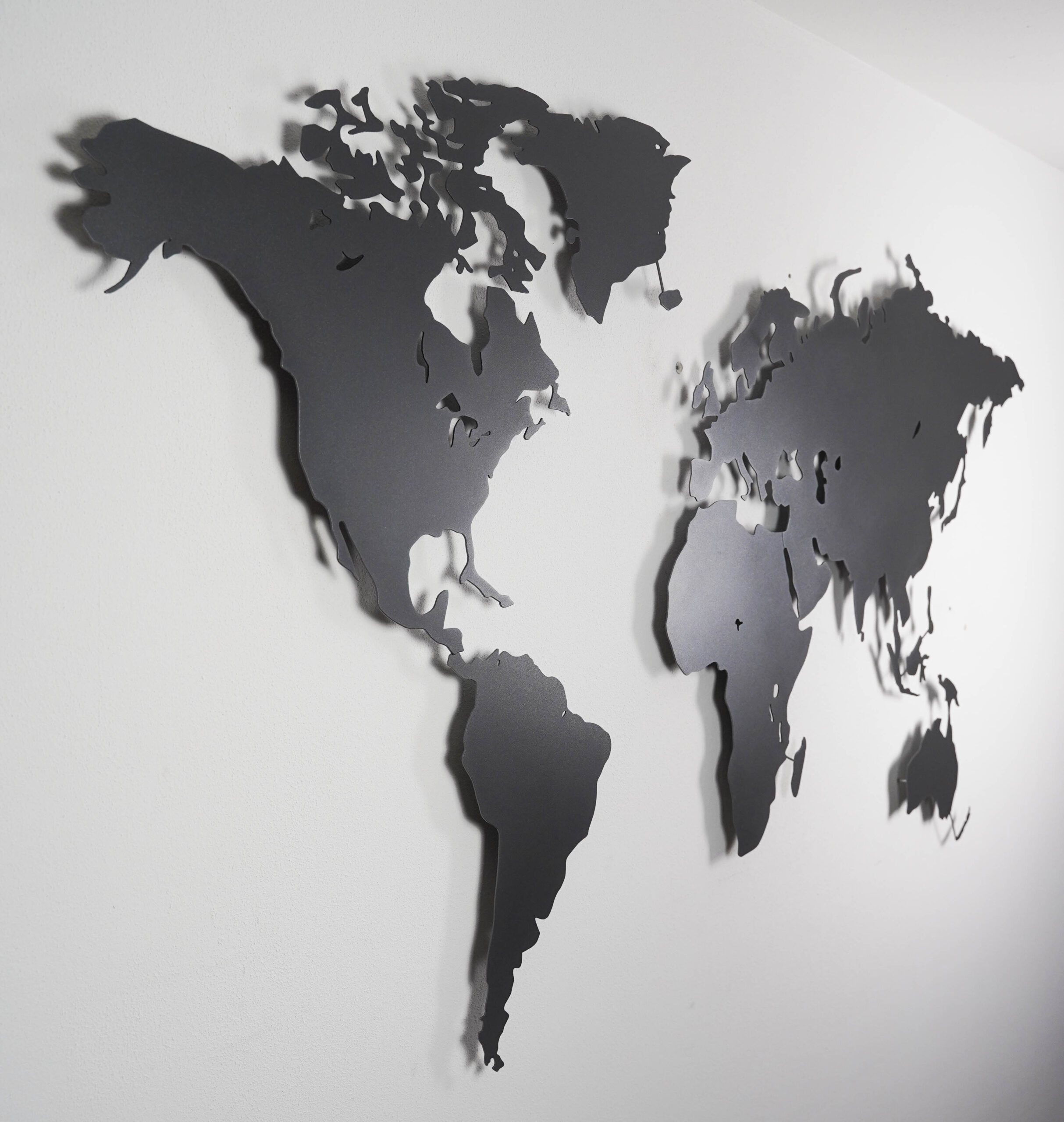 - Five stylized world map elements made of 2 mm powder-coated steel (Iron Mica DB703)