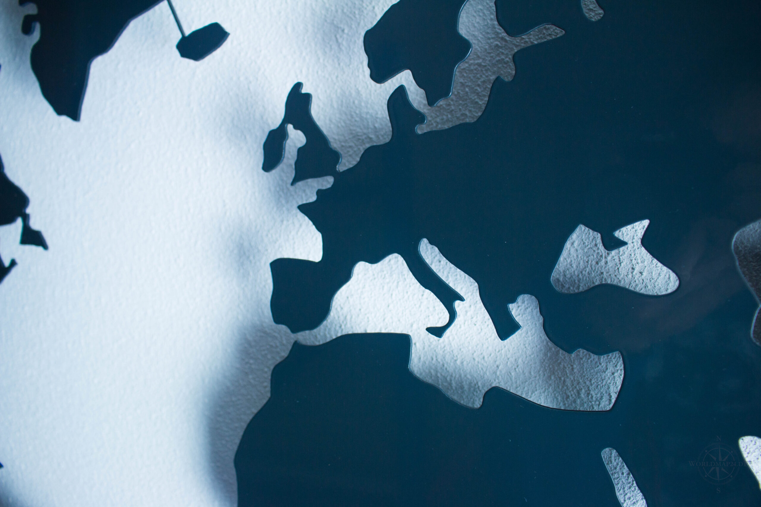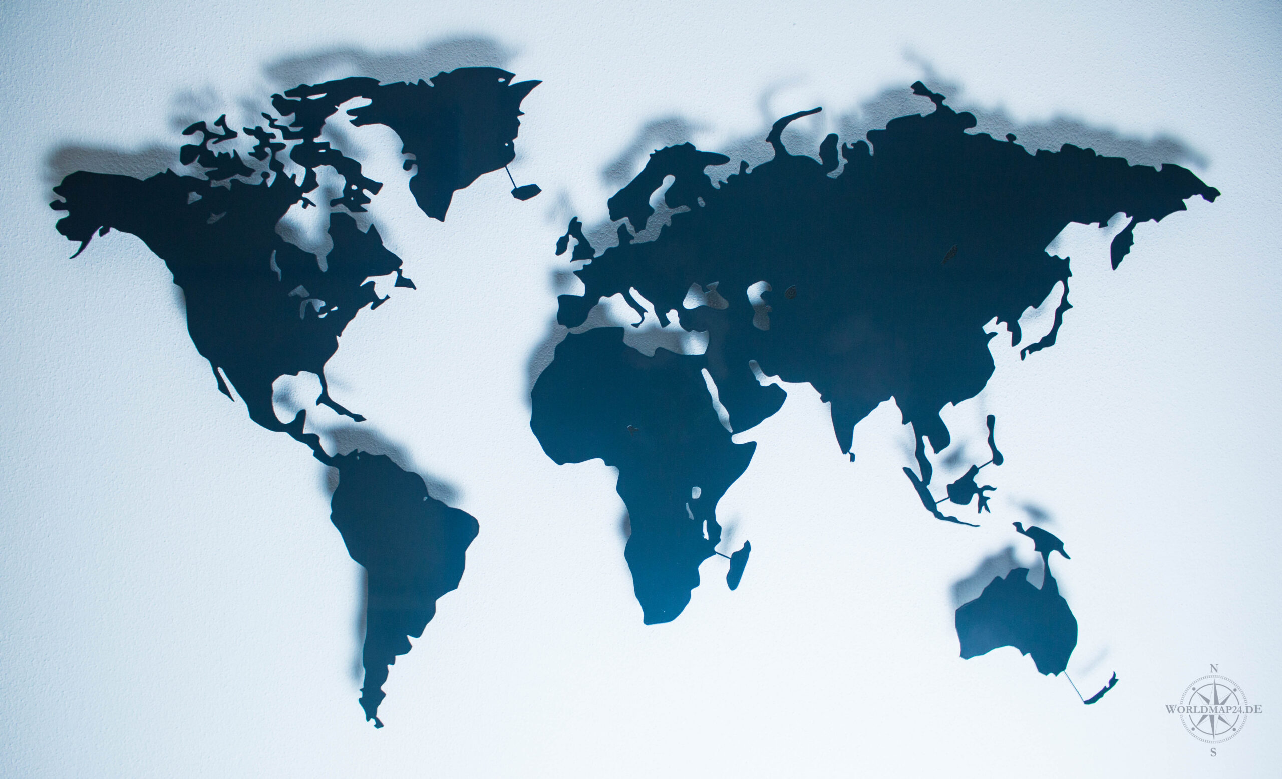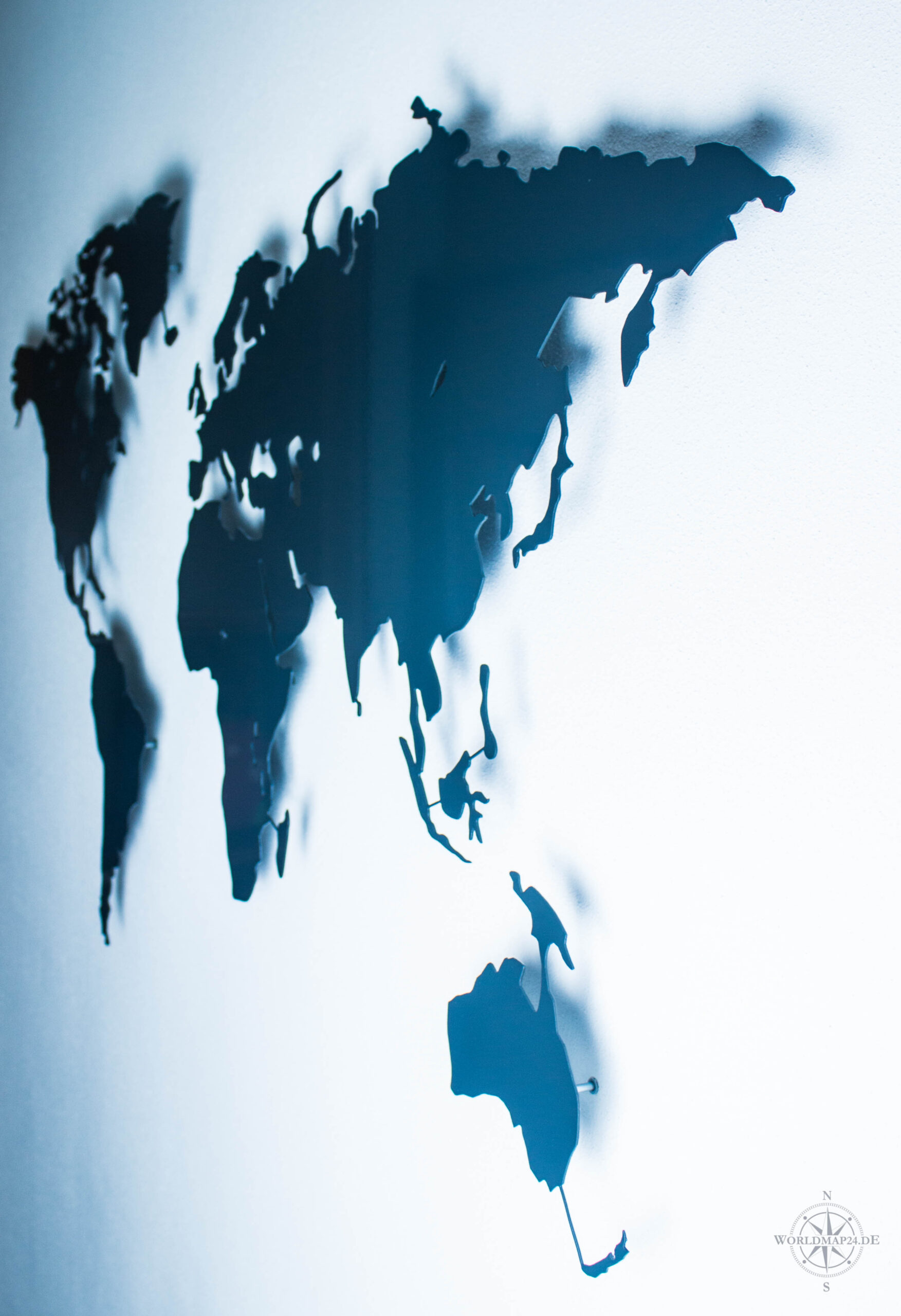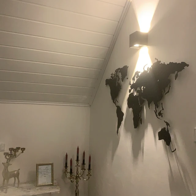 This metal world map in elegant anthracite gray RAL 7016 is more than just wall decor – it’s a stylish statement of modern interior design.