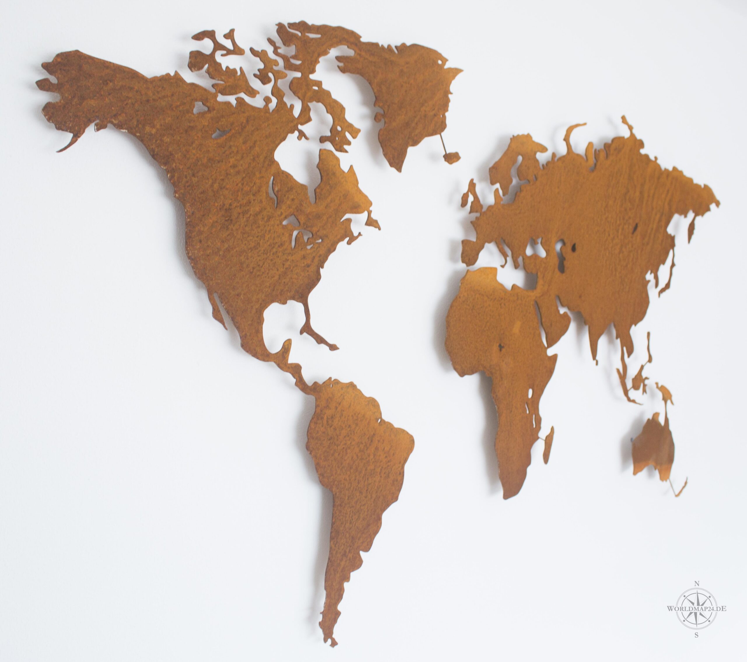 Diese Weltkarte aus COR-TEN-Stahl ist ein echtes Unikat.